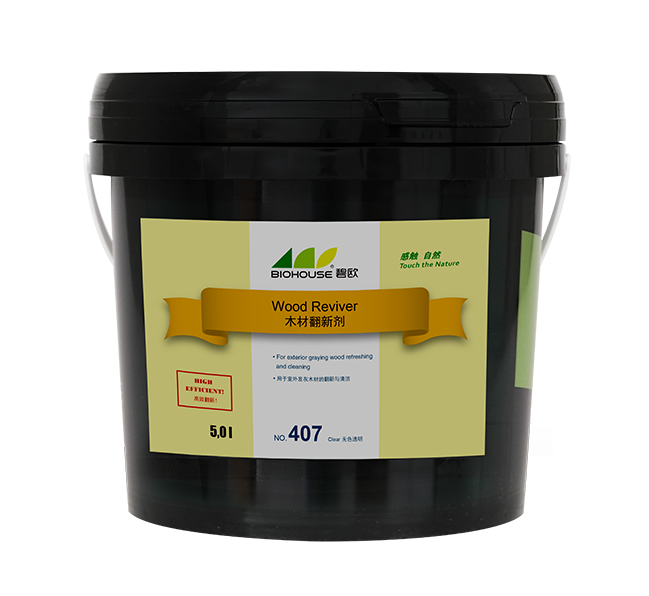 Biohouse? Wood Reviver is a deep cleaning agent for the surface of wood, used to clean and refurbish outdoor wood that has turned gray. Wood refurbishing agent penetrates into the wood, Remove stains and gray aged surfaces to restore the wood to its original color. After cleaning, outdoor oil finish such as Biohouse? UV-resistant Clear Oil 8300.